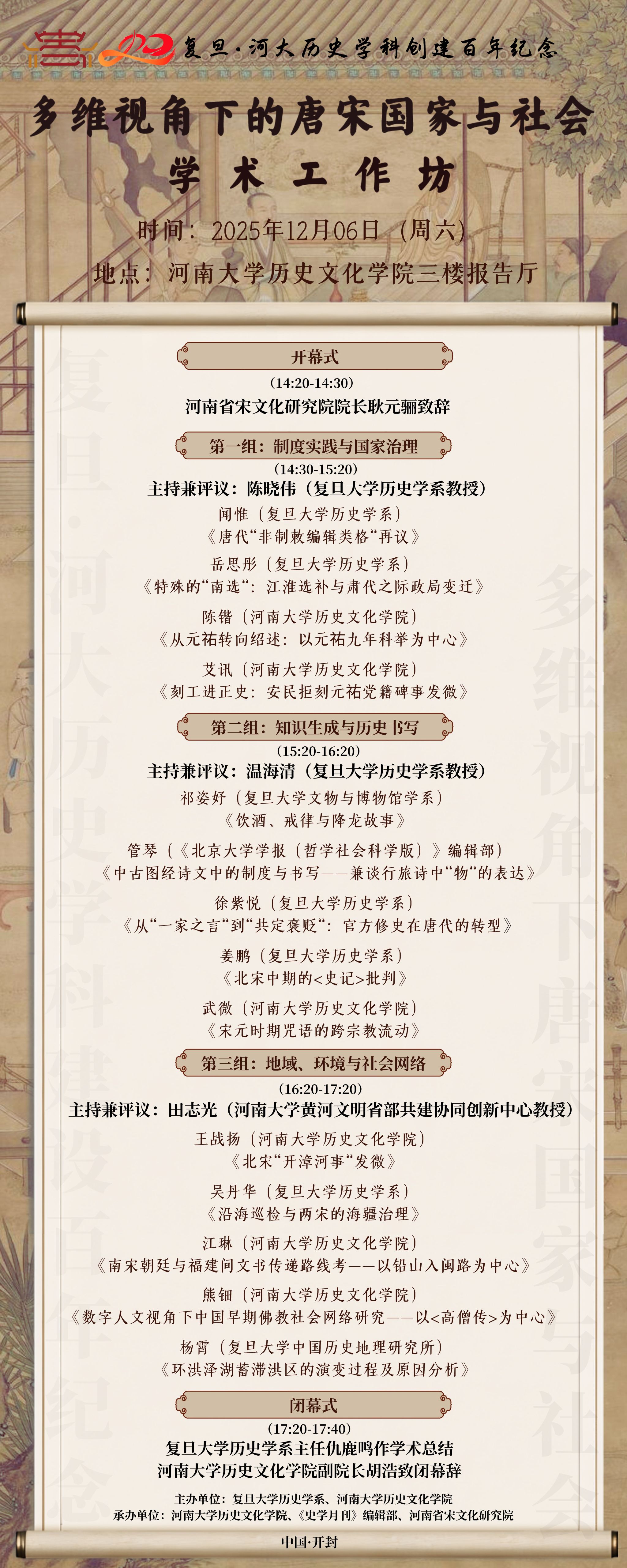 复旦·河大历史学科创建百年纪念:多维视角下的唐宋国家与社会学术工作坊议程