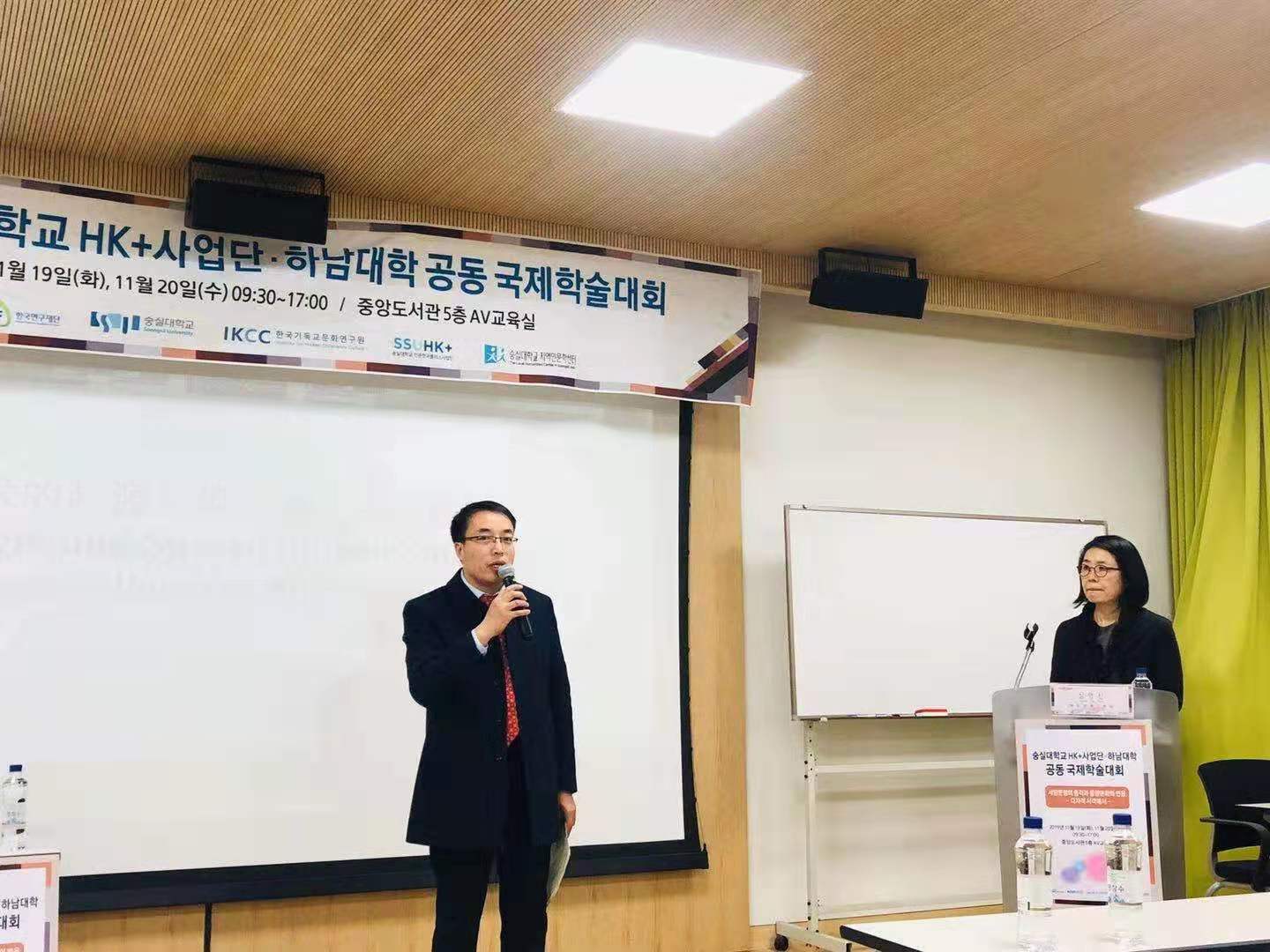 祁琛云副院长等一行13人应邀参会,同时参会的还有来自韩国崇实大学、大田大学、日本名古屋大学、俄罗斯科学院等高校及科研机构学者30余人。会议开幕式由崇实大学金正烈教授主持,HK集团黄敏湖教授与祁琛云副院长分别致辞,对会议的源起、召开与未来的合作规划等做了介绍。