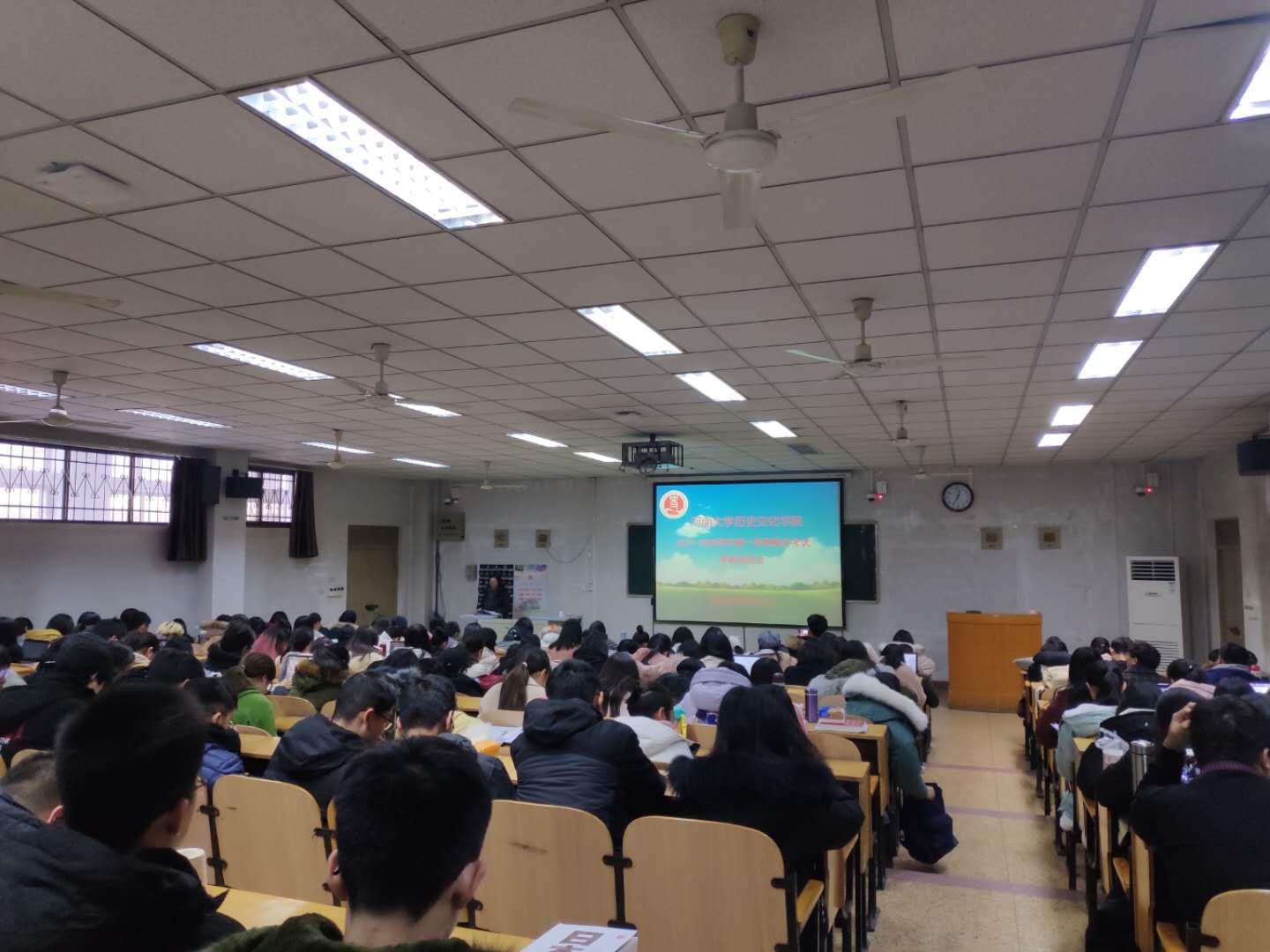 本科生于12月25日-27日分别以年级为单位在综合楼组织召开了“珍惜时间、诚信考试”考前动员会。动员会由各年级辅导员主持。