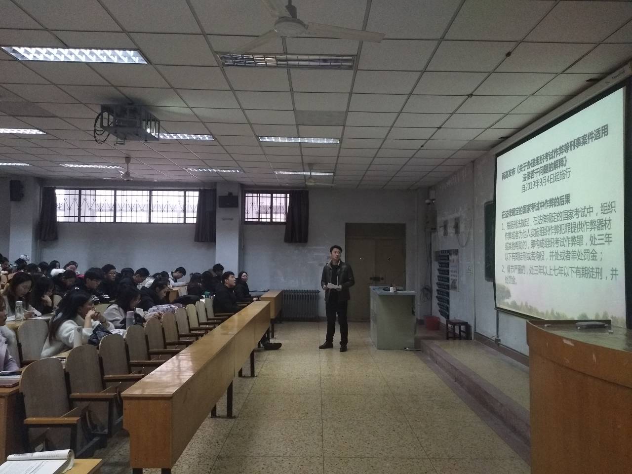 辅导员王文君、郑振亚、贾茜贝分别为本年级同学做考前动员。各年级辅导员首先带领大家学习了学校下发的考试相关文件内容,着重说明了国家对于作弊的法律法规以及《日本五级片