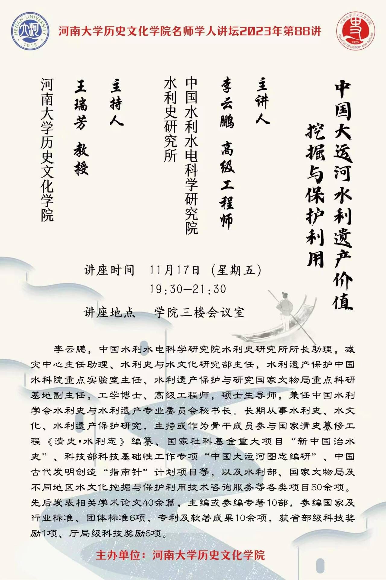 【讲座通知】李云鹏:中国大运河水利遗产价值挖掘与保护利用