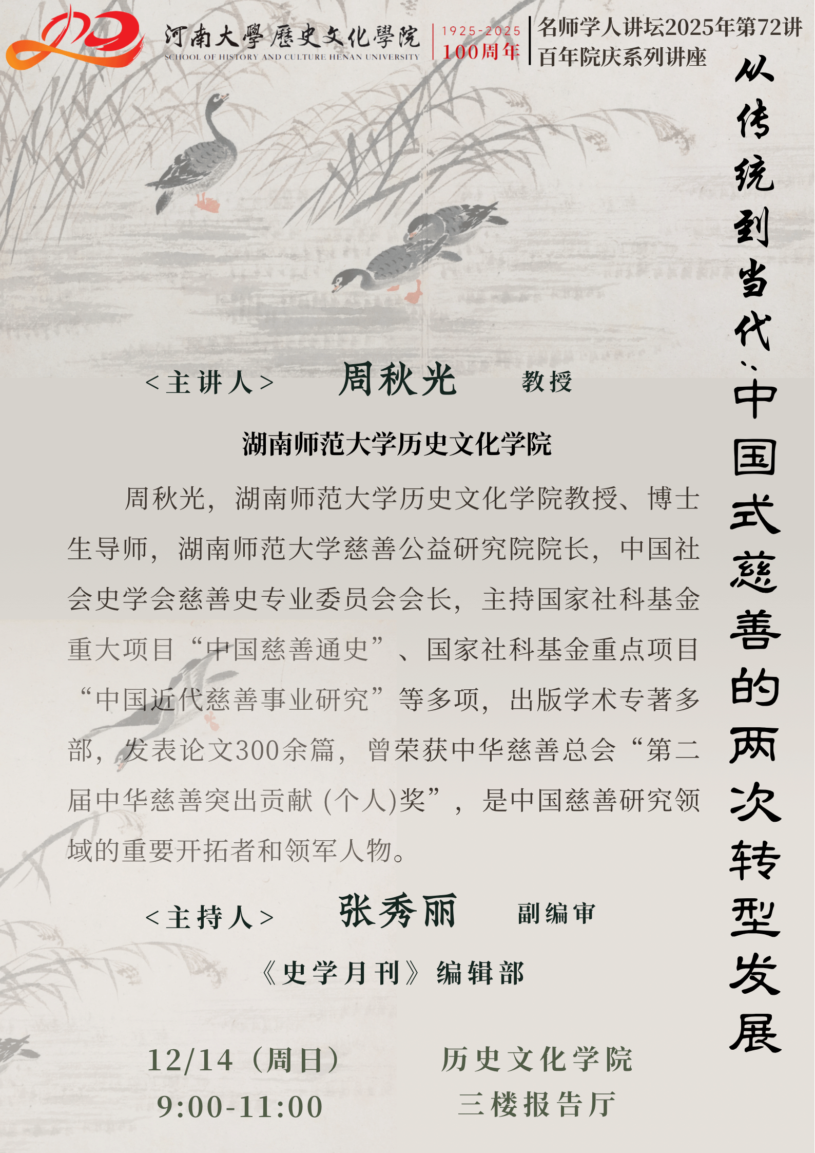【讲座预告】周秋光:从传统到当代:中国式慈善的两次转型发展