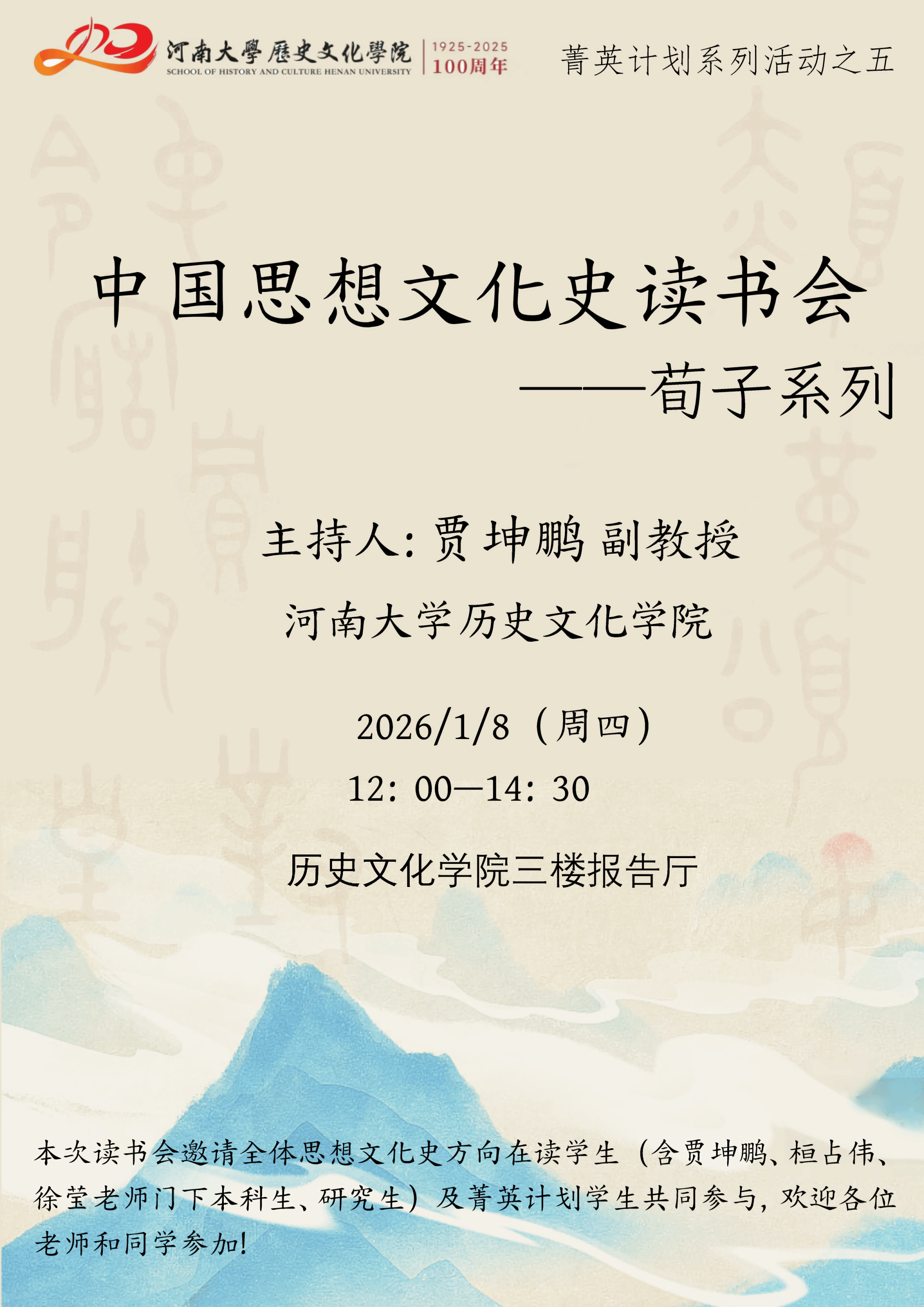 【讲座预告】菁英计划系列活动之五:贾坤鹏:中国思想文化史读书会——荀子系列