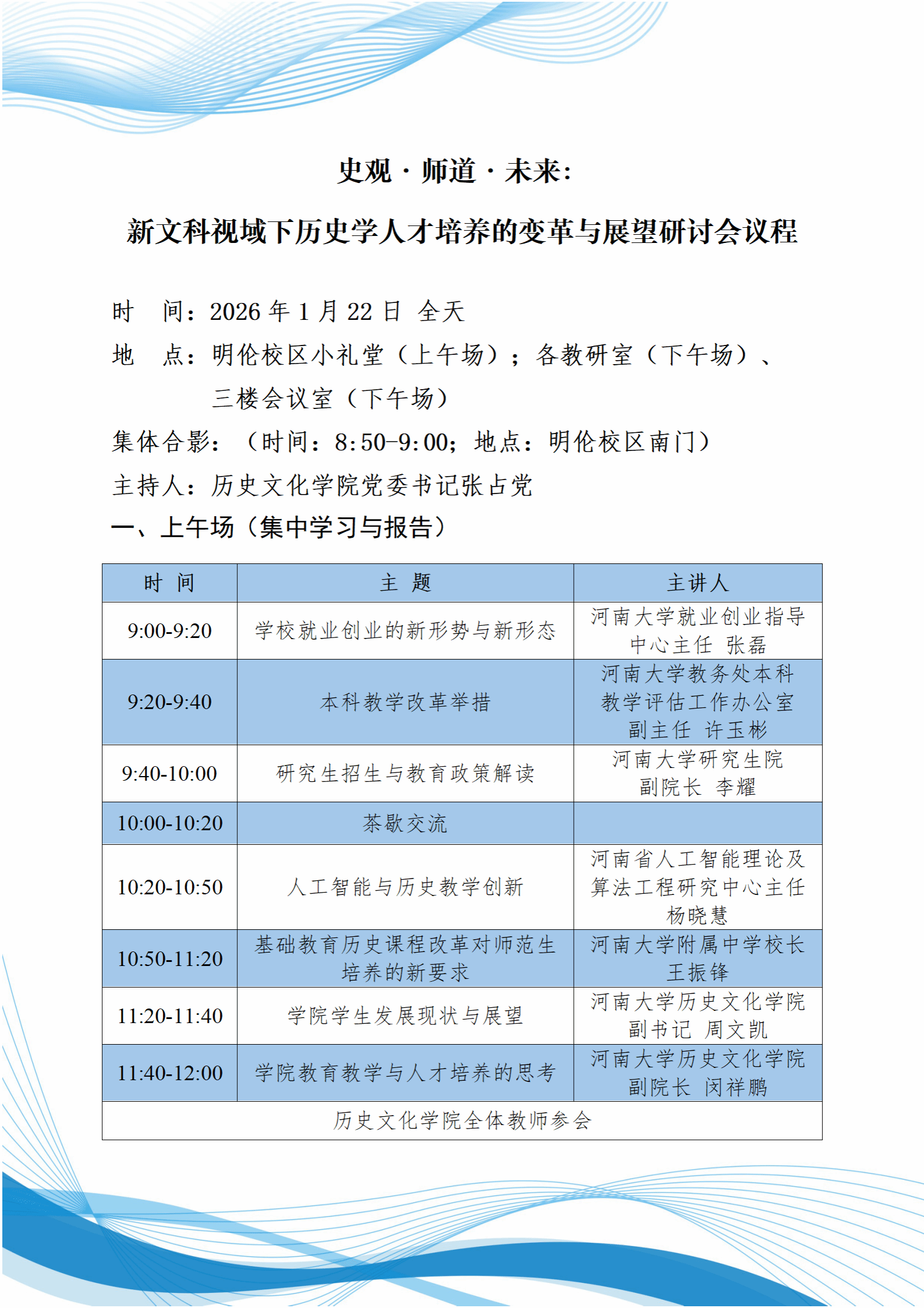 史观·师道·未来:新文科视域下历史学人才培养的变革与展望研讨会议程