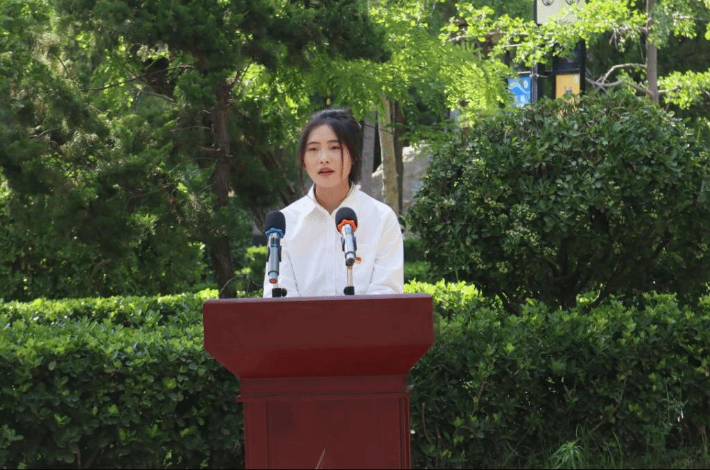 全体师生党员追随党的忠心、献身党的决心。毕业生党员代表冯钰娜和新发展党员代表王庆滋相继发言。她们表示,作为学生党员,要坚持树立远大理想,学好专业知识,勇担时代责任,传承和发扬好党的优良传统,以更加出色的成绩为党旗增辉。