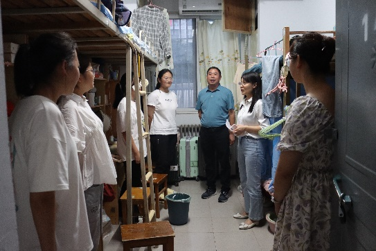 党委书记张占党、院长祁琛云、党委副书记周文凯、副院长李竞艳,陈升远,闵祥鹏和2022级辅导员郑振亚、2020级贾茜贝、2023级新生辅导员王煜皓一行前往仁和公寓走访慰问2023级本科新生。