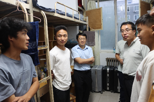 在看望走访过程中,学院领导对新生们的到来表示了热烈的欢迎。张占党与同学们进行了亲切交谈,仔细询问了同学们到校后的适应情况,了解他们家乡与专业有关信息,希望同学们做好学习规划,以饱满的精神迎接新阶段的大学生活。祁琛云亲切叮嘱同学们如果在今后的学习生活中遇到困难,一定要及时向学院或辅导员反映,学院将尽全力解决,为同学们营造一个良好的生活和学习环境。学院领导们鼓励大家要团结友爱、互帮互助,营造良好的宿舍氛围,展现新时代大学生风貌!同学们对学院领导的看望慰问非常开心,深深感受到了学院的关怀,表示一定会以积极向上的态度投入到未来的学习和生活中。