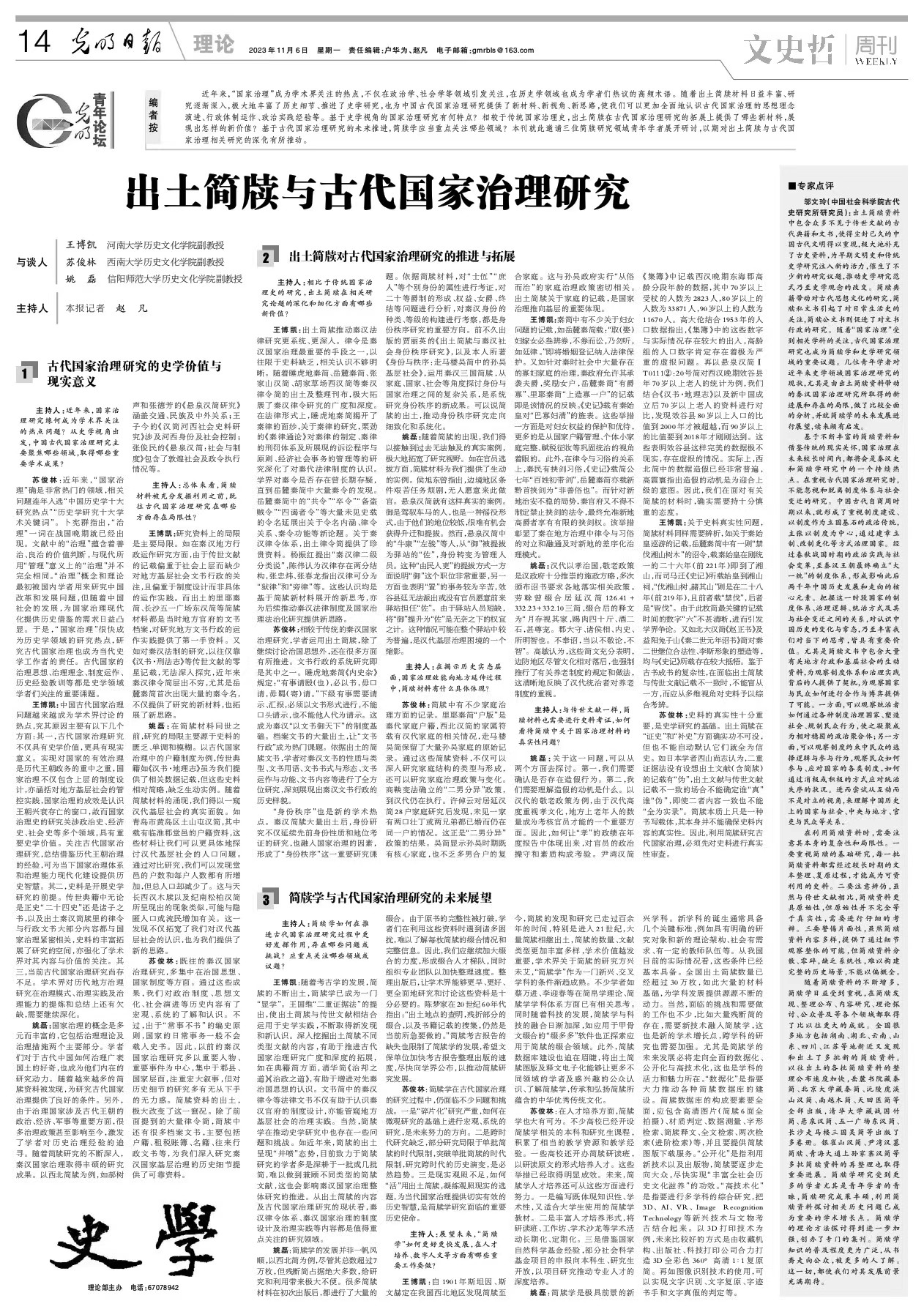 青年教师王博凯博士参与策划组织的专题理论访谈文章《出土简牍与古代国家治理研究》在《光明日报》第14版《理论•史学》发表。