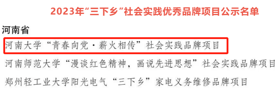 所申报的“青春向党·薪火相传”社会实践品牌项目荣获2023年“三下乡”社会实践优秀品牌项目。