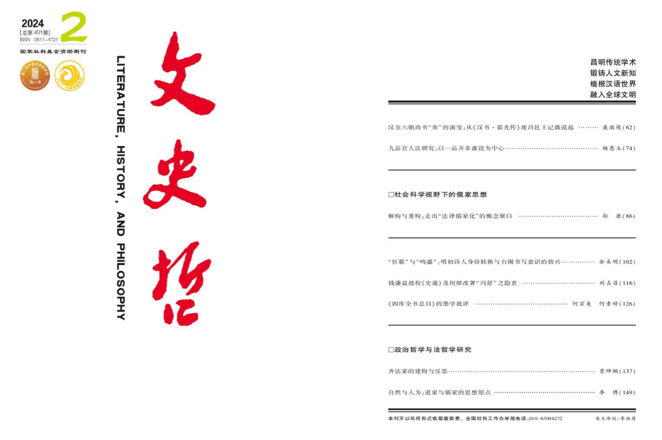 青年教师贾坤鹏在《文史哲》(2024年第2期)刊发文章《齐法家的建构与反思》。