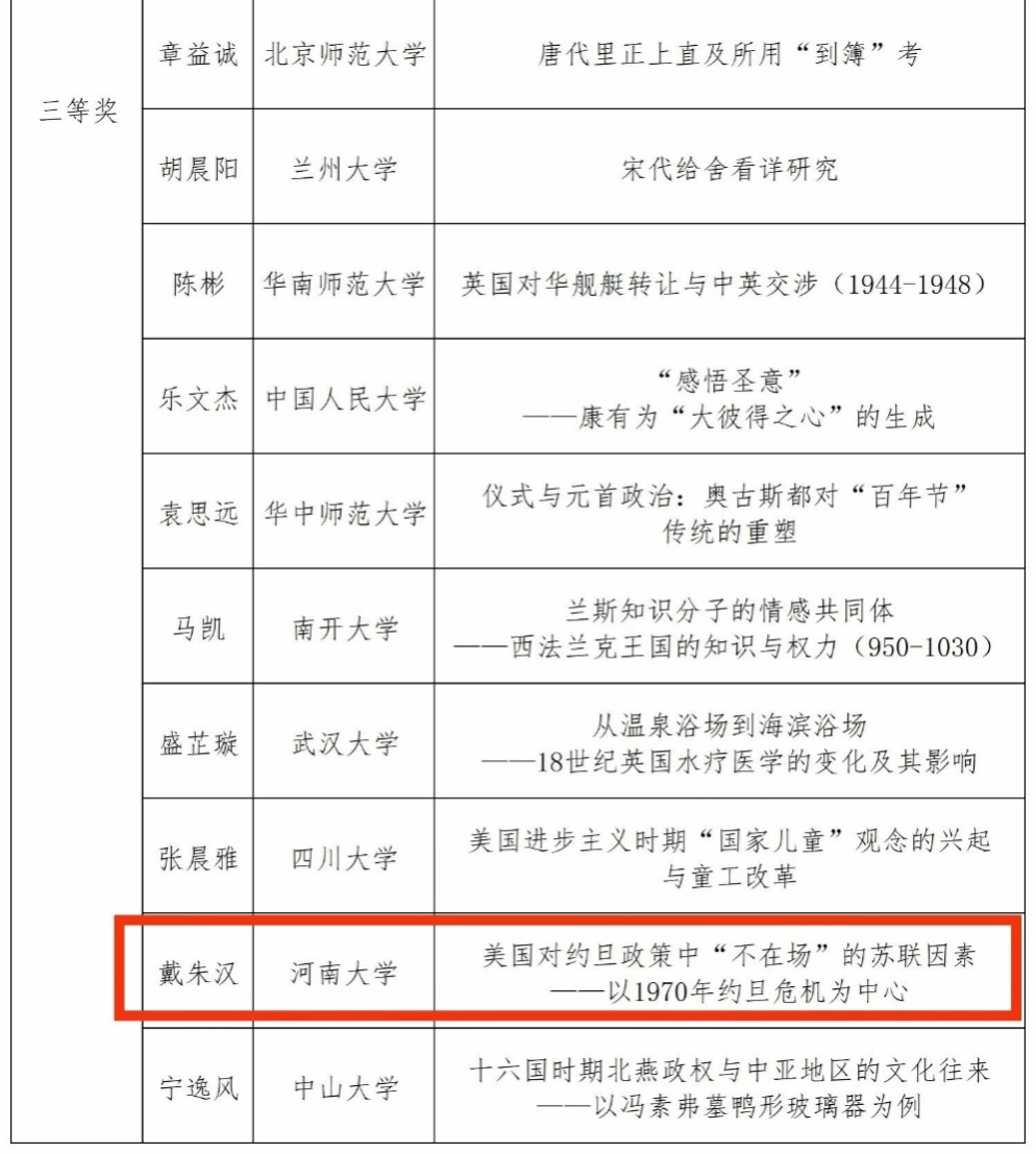 近期部分历史学论文竞赛获奖名单: