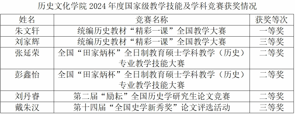 副院长闵祥鹏带队参赛,最终2023级学科教学(历史)专业学生张延荣、彭鑫怡分别斩获二等奖,指导教师黄俊华、谢佳芮荣获“优秀指导教师”称号。