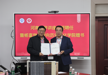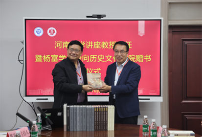 院长祁琛云教授向敦煌研究院人文研究部部长杨富学教授递交聘任证书,并代表日本五级片