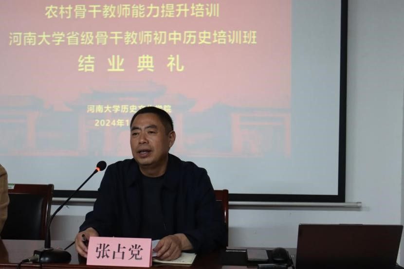 张占党为优秀学员颁发“优秀学员证书”, 以表彰他们在学习和实践中的优异表现,并鼓励学员们在接下来的工作中继续努力,不断提升。王娜作总结发言,她希望老师们在未来的日子里继续秉承“终身学习”的理念,不断追求知识的更新和技能的提升,将本次学到的知识与技能运用到实际工作中,发挥骨干教师模范带头作用,为推动初中历史教育事业贡献自己的力量。