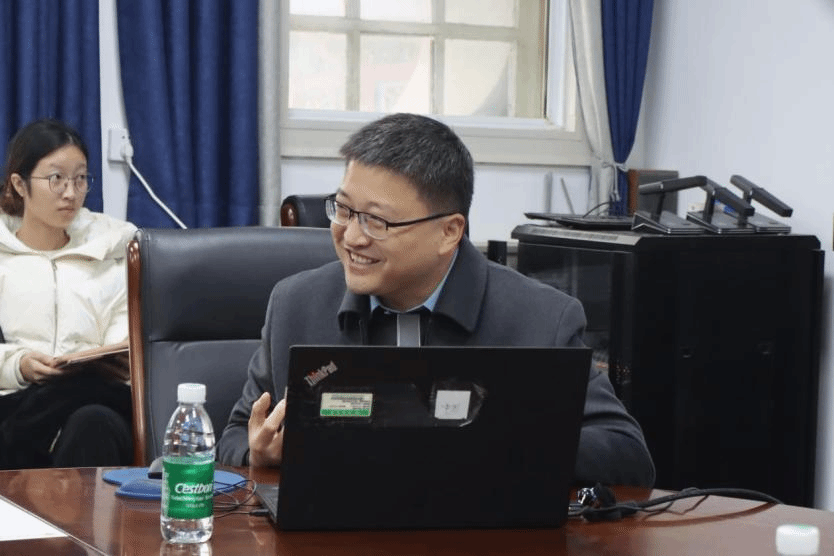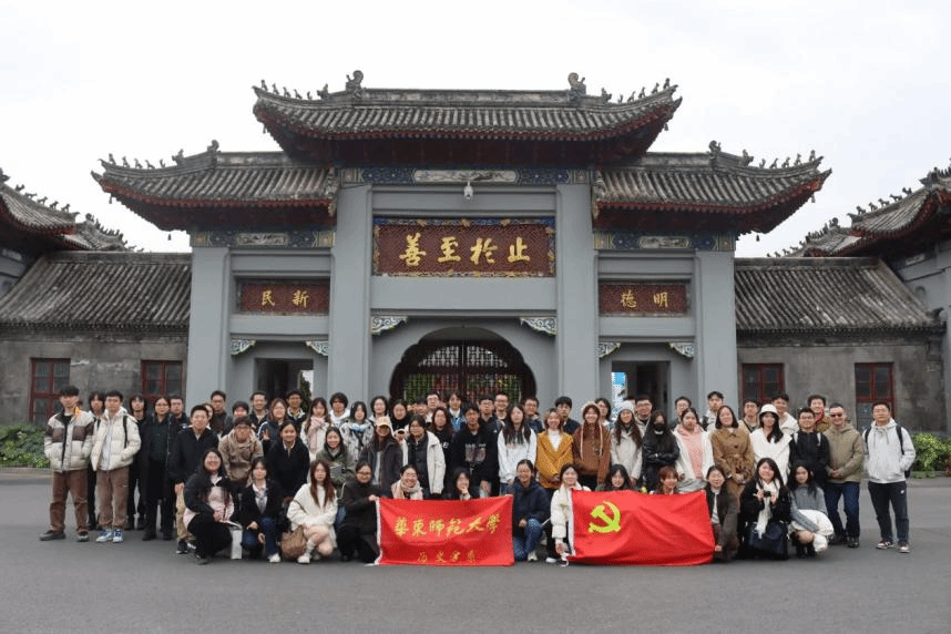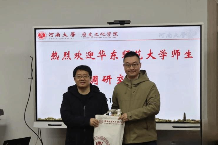 座谈会结束后,华东师范大学历史学系教师代表苏圣捷向学院副院长闵祥鹏赠送纪念礼物并在学院门前合影留念。