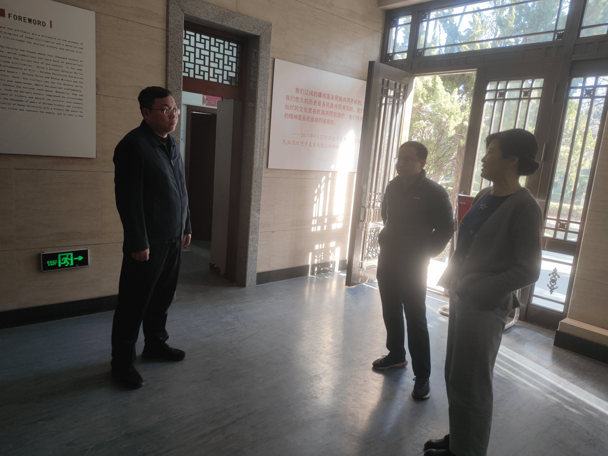 党委副书记周文凯、副院长陈升远带队于1月14日至15日间深入学院办公区、实验室、文物馆及宿舍开展安全检查工作并看望留校学生。