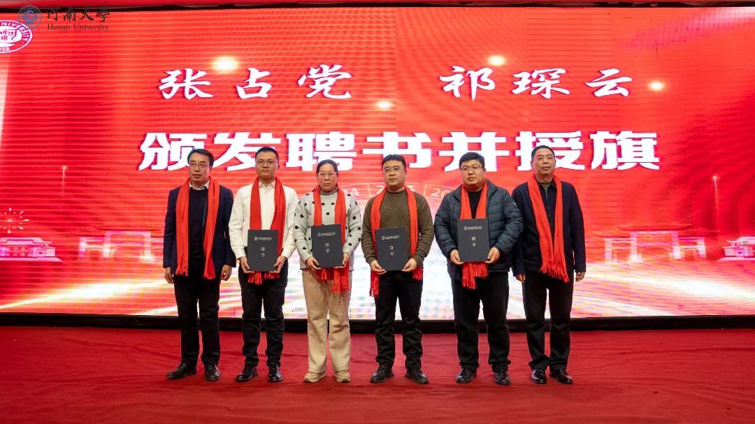 党委书记张占党、院长祁琛云为分会副会长、秘书长、副秘书长颁发聘书。