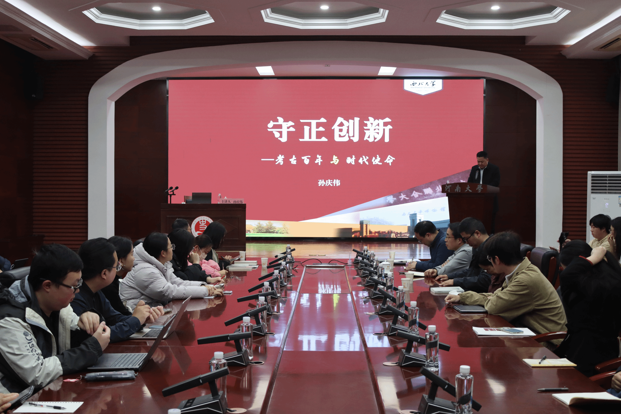 11月28日下午,西北大学校长、党委副书记、教授孙庆伟受邀在河南大学明伦校区小礼堂作题为《守正创新——考古百年与时代使命》的报告。本场讲座由河南大学副校长、教授张礼刚主持。