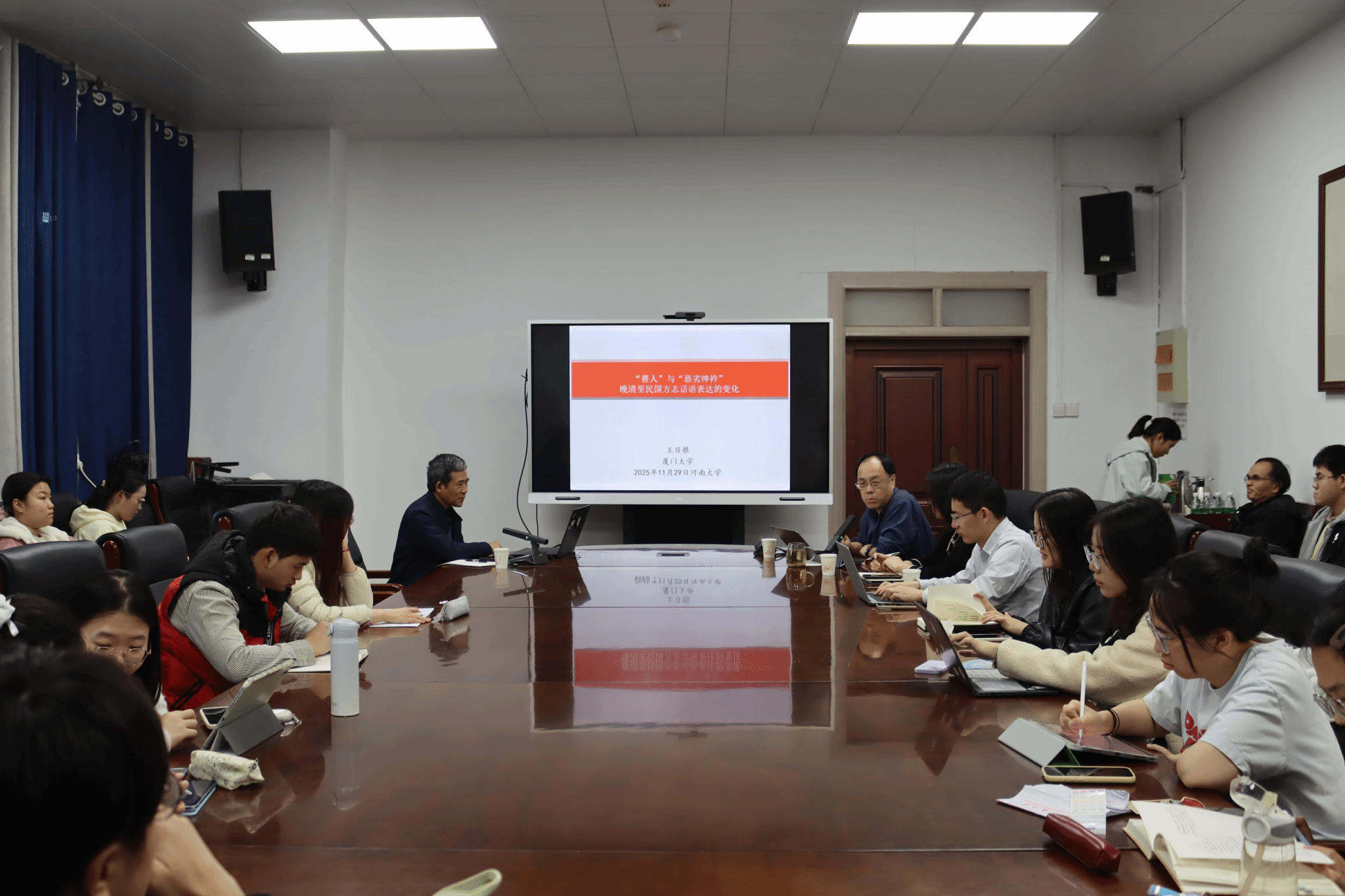 11月29日下午,厦门大学历史与文化遗产学院王日根教授受邀在河南大学历史文化学院三楼报告厅作题为《“善人”与“恶劣绅衿”:晚清至民国地方志话语表达的变化》的讲座。本场讲座由河南大学历史文化学院耿元骊教授主持。