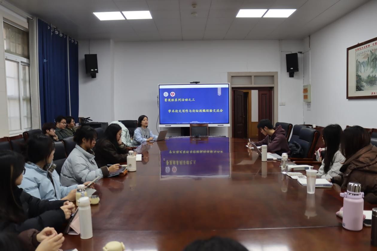 学术论文写作菁英班系列活动之三——学术论坛投稿经验交流会,在学院三楼会议室顺利举行。本次交流会由学院安瑞老师主持,菁英班全体同学参与,本研学子代表齐聚,分享论文写作与论坛投稿经验。