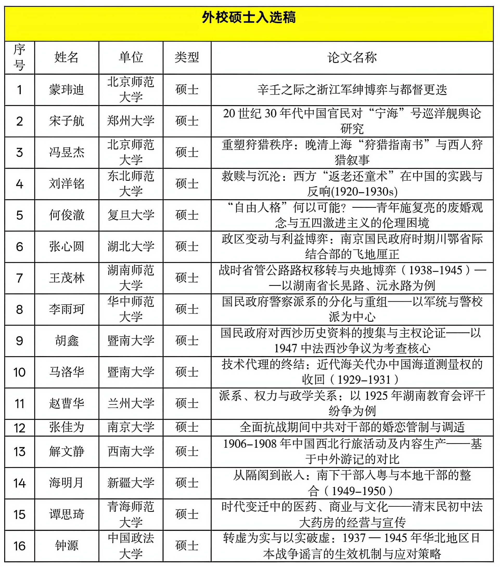 、《史学月刊》教师等审阅、评选,最终遴选出43篇论文参会。限于会议规模,还有较多优秀论文无法入选,甚是遗憾,谨此对广大师生的支持与厚爱表示感谢。