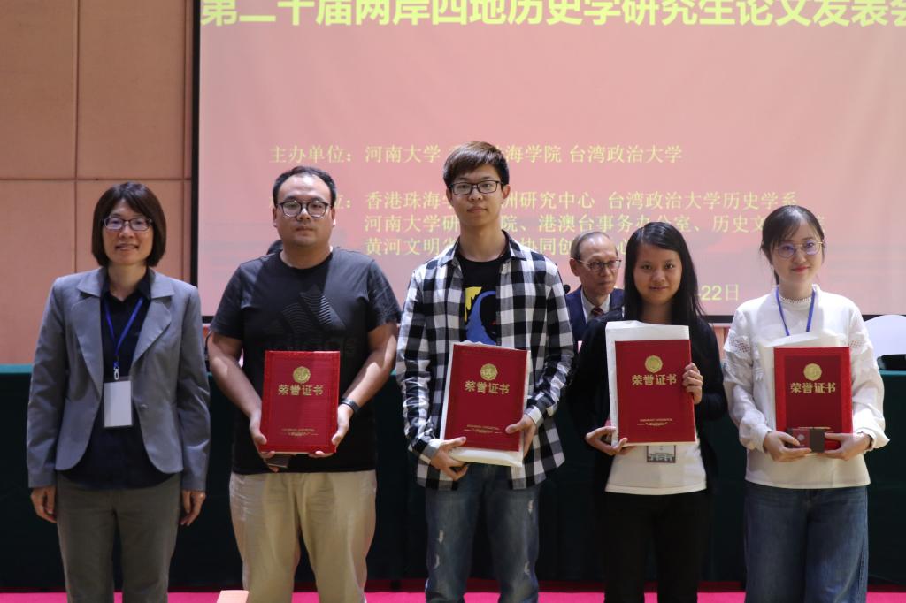 的祁红伟、北京师范大学的张熙、南京大学的陈紫竹以及清华大学的成威华代表本组进行总结发言。四位同学对各自所属小组的论文进行了简要概述,提出个人的看法与意见,做出了比较全面的总结。各组完成总结后,由香港珠海大学文学及社会科学院院长邓昭祺对本届两岸四地历史学研究生论文发表会进行总结致辞。邓昭祺指出,此次发表会的目的是为来自各校的研究生提供切磋学问、交流心得的平台,同时表示此次会议中参加评议的论文内容丰富,涉及领域广泛,研究方法新颖并且多有涉及近些年来史学研究的热点话题,基于此点,邓昭祺对与会研究生表达了殷切的希望,愿他们能够互相交流学习,不断提高学术水平,勇攀学术高峰。致辞后,发表会举行颁奖仪式,此次大会共设四个奖项,共有十三名同学获奖。在会议结束之际,日本五级片