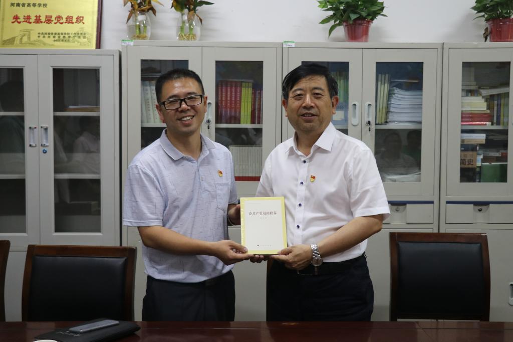 党日活动结束后,世界史党支部向组织部党支部赠送了《论共产党员的修养》书籍,并合影留念。