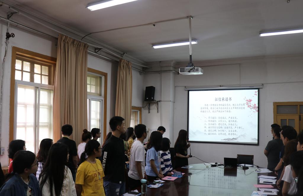 在后续发言过程中,毕业生们结合个人经历,援引身边诚信事迹,在关于如何做一名诚实守信的大学生这一问题做出热烈讨论,并将良好信誉所能带来的益处一一罗列了出来。同学们一致认为,诚信对于大学生日后的求学和工作有着极其重要的意义,大学生应当重视自己的征信记录,不做违约之事。最后,与会毕业生集体进行庄严的诚信宣誓,并在承诺书上签字。