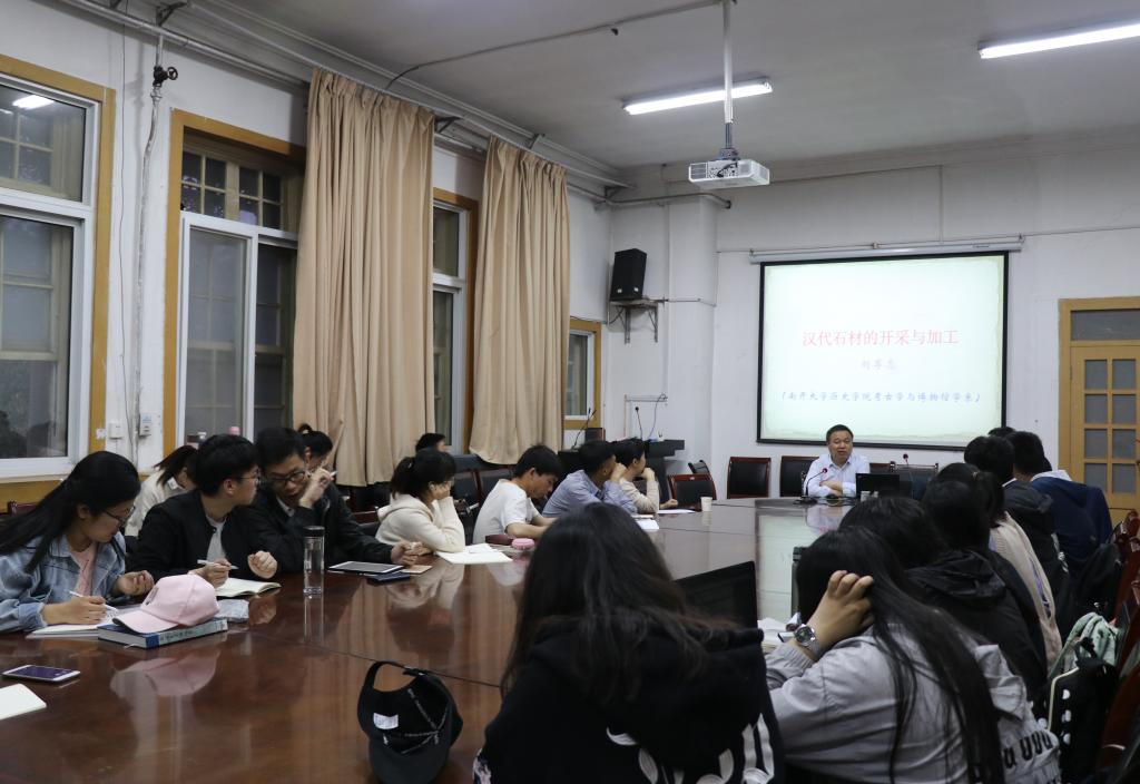 刘尊志教授考古工作经验丰富,以自己的亲身经验向同学们讲述了关于汉代石料的加工和开采,讲座内容充实,生动有趣,展现了考古工作者严谨踏实的工作态度,得到了在场师生的一致好评。