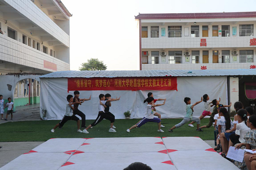 支教团的感谢,紧接着节目各类节目轮番登场,异彩纷呈。文艺班带来的歌曲《成都》悠扬动听小虎队的《爱》青春怀旧;演讲与口才班的朗诵《水调歌头》声情并茂,《理想》铿锵有力,抑扬顿挫;体育班展示了一场行云流水的太极拳表演和一首嘹亮热血的《强军战歌》;武术班则呈现了一场精彩绝伦的《少林英雄》,现场气氛达到顶峰。最后,支教团队长代表支教团发表感言,感谢十五天以来学校老师的照顾,希望孩子们在今后的学习生活里能够不断进步,未来越来越美好。在一片掌声中,文艺汇演落下了帷幕。