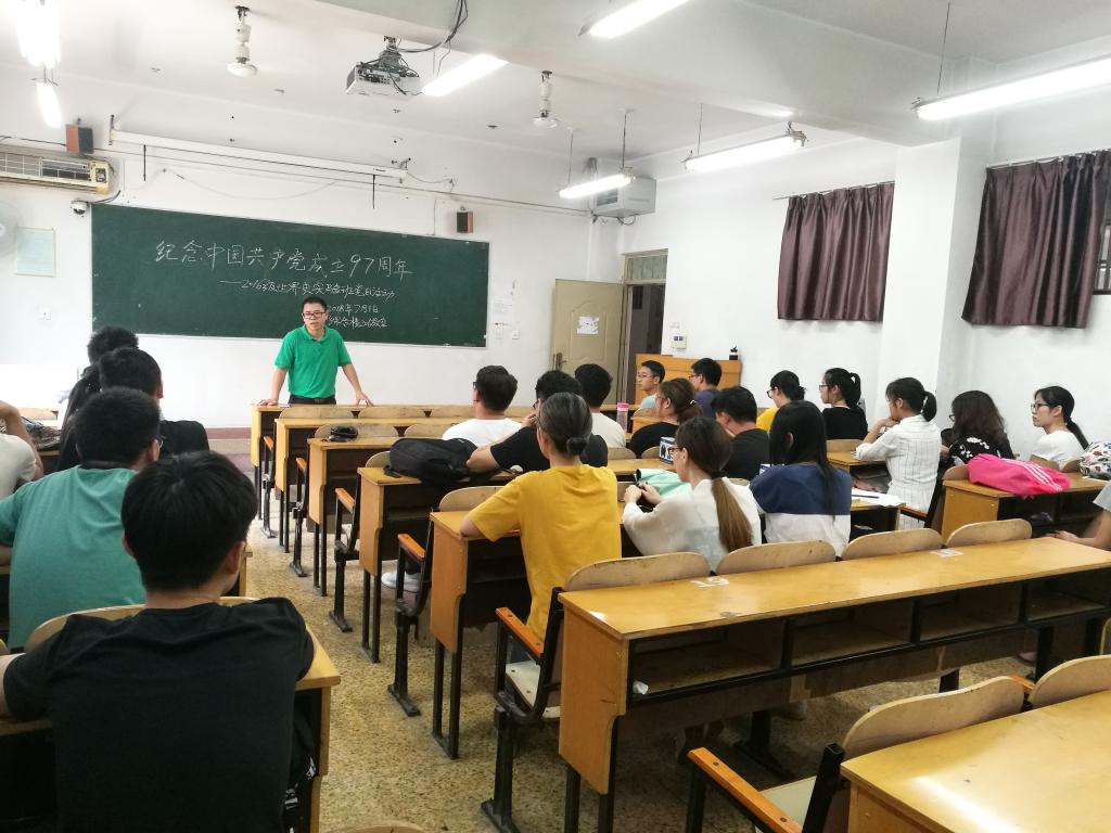 “明德计划”2016级世界史实验班全体同学在综合楼206教室开展团日活动,纪念伟大的中国共产党成立97周年。该活动由实验班班主任、日本五级片