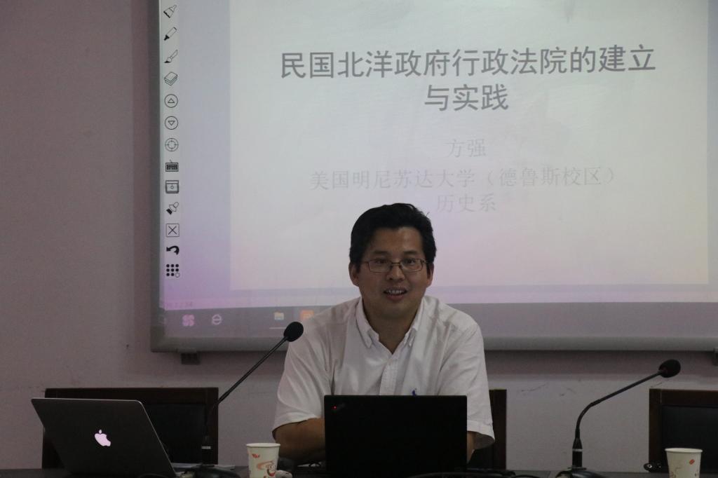方强教授以时间为轴线,先从清末行政法院筹备的背景以及过程简要阐述了清末行政法院的建立,然后对民国时期北洋政府平政院做了重点介绍。他指出,北洋政府平政院建立的原因是1914年5月22日,袁世凯发布《大总统令》谈到了地方官员的腐败问题。同时介绍了1914年4月,袁世凯国会通过了《平政院编制法草案》,同时设立肃政厅监督平政院。肃政厅可以到平政院提起诉讼,对平政院的审判裁决进行监督,但不得干涉平政院的审判,1916年9月,肃政厅被撤销。随后,方强教授通过列举民国北京政府《诉愿法》具体条例并结合肃政厅与平政院典型案例对平政院的诉讼程序做出了阐释。最后,结合众多案例与学者观点,方强教授对北洋政府平政院的效能做出了评价。