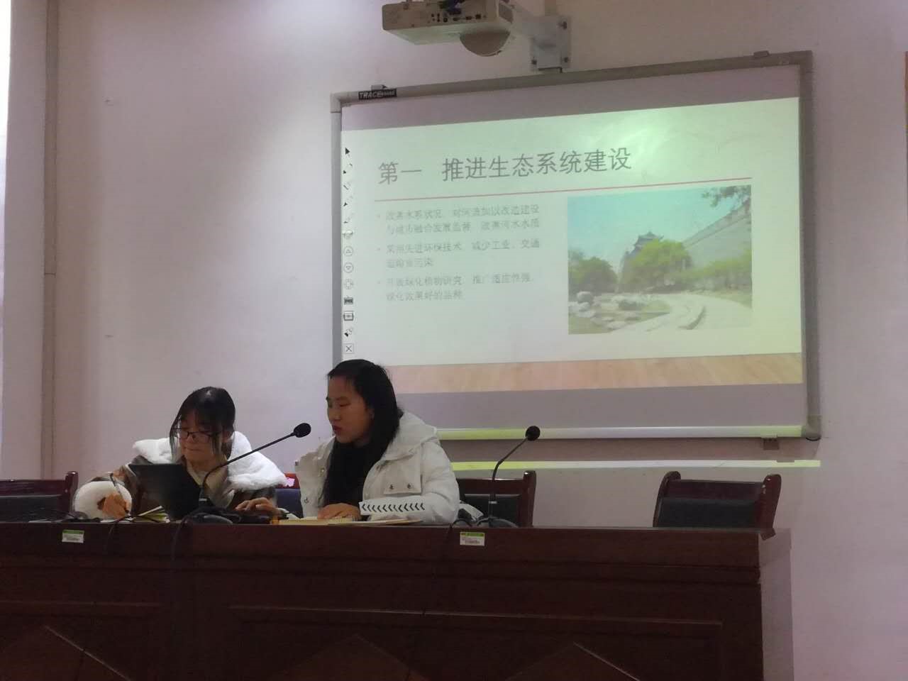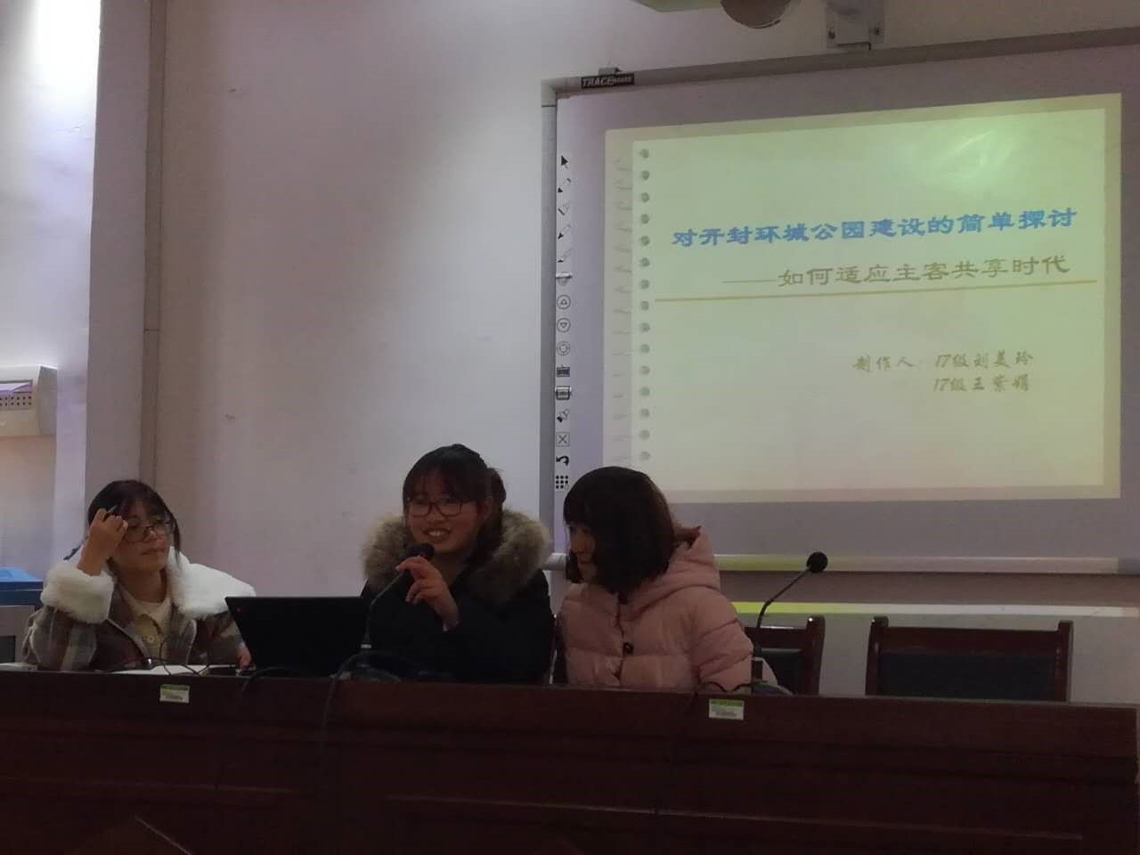 第二部分为主题汇报环节。17级旅游管理专业的刘杉、刘美玲和王紫娟同学分别作了主题汇报。刘杉同学通过全域旅游的概念引出主客共享这个主题,重点围绕开封环城公园的现状和问题进行讲述,并提出了改进措施。刘美玲和王紫娟同学在实地调研基础上,指出开封环城公园存在的一些问题,提出借鉴其它地方环城公园的特色、完善基础设施建设、深入挖掘历史文化资源、规划和整合每期环城公园等建议。