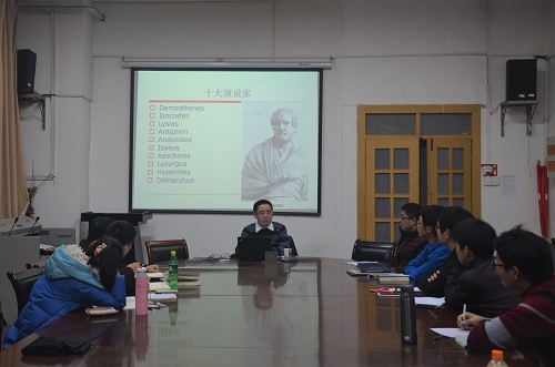 陈思伟老师首先阐释了演说辞的概念及主要内容,他指出,民主政治的内在需要和司法制度的安排是古典时代演说盛行的根本原因。20世纪中期以前,研究者主要关注演说家及演说辞的风格,未能全面考察演说辞的优势和缺陷及其承载的社会经济信息。但演说辞必然承载了某些历史内核,反映了一个时代的社会面貌,虽然它存在可信度不高和缺乏代表性的问题,但其社会经济史料价值是不可忽视的。他表示,如果能够客观认识演说辞存在的不足,充分结合其他史料加以印证和补充,古典时代阿提卡演说辞将成为“古代社会经济史一类非常丰富的史料来源”。同时,也希望同学们能够用批判的眼光来解读史料,提取史料价值,认真对待史学研究。