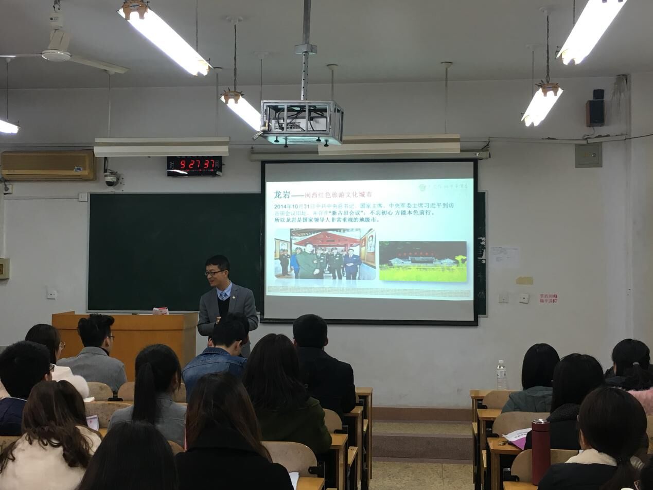 2015级院旅游管理专业60余名学生进行了面对面的短暂而又亲切的交流。黄河总经理与同学们分享了他从事多年酒店业的经理和体会,介绍了龙岩佰翔京华酒店经营现状和发展模式。随后,又介绍了一些龙岩地区的革命故事和红色文化。