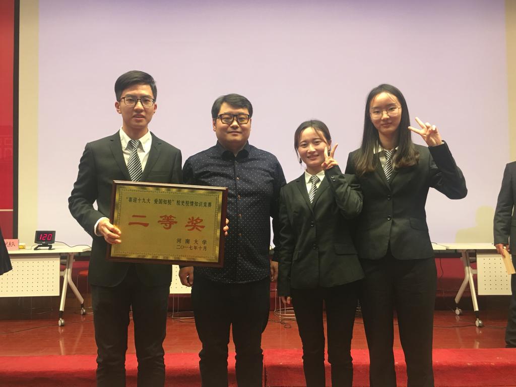 之所以取得较好的成绩排名,主要是因为学院领导的高度重视、积极组织,自知识竞赛消息公布的那一刻起,许书记就向队员提出要求,一定要好好准备,为学院争光。在学院领导的督促下,各队员积极备战,全身心的投入到校情校史的学习活动中。本次比赛旨在进一步坚定当代大学生理想信念,培养他们“爱国知校”的思想,繁荣校园文化,为学校发展营造良好氛围,以良好的精神面貌迎接党的十九大召开。