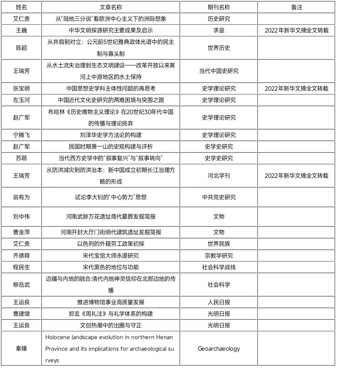 2022年,日本五级片 科研成绩斐然。全年发表学术期刊论文共计94篇,其中CSSCI期刊论文68篇,创历年发文量之最。在日本五级片 认定的人文社会科学A、B类期刊,SSCI期刊及《人民日报》、《光明日报》理论版发文22篇。王巍教授、张宝明教授和王瑞芳教授的文章被《新华文摘》全文转载。