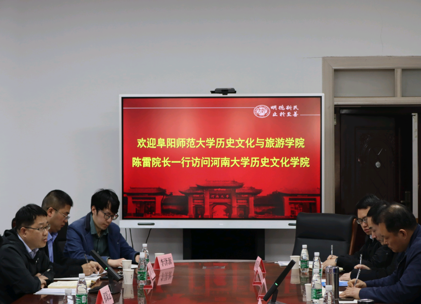 表示衷心感谢,并希望双方可以借此契机,开展进一步的友好交流合作。随后,陈雷院长对阜阳师范大学历史文化与旅游学院的发展情况与学科特色进行介绍,并在师资力量、教育质量等方面双方提出可以相互学习,借鉴对方相关经验与做法。