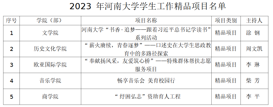 学生工作精品项目”。