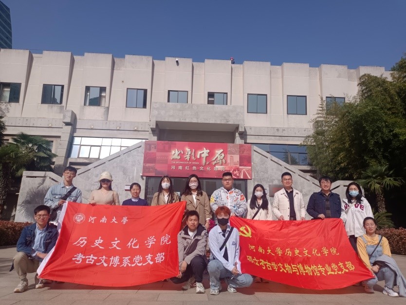 考古文博系教师党支部与硕士考古学文物与博物馆专业学生党支部联合开展“弘扬中原文化,赓续红色血脉”主题党日活动,师生党员共同到河南博物院参观学习“出彩中原——河南红色文化陈列展览”。