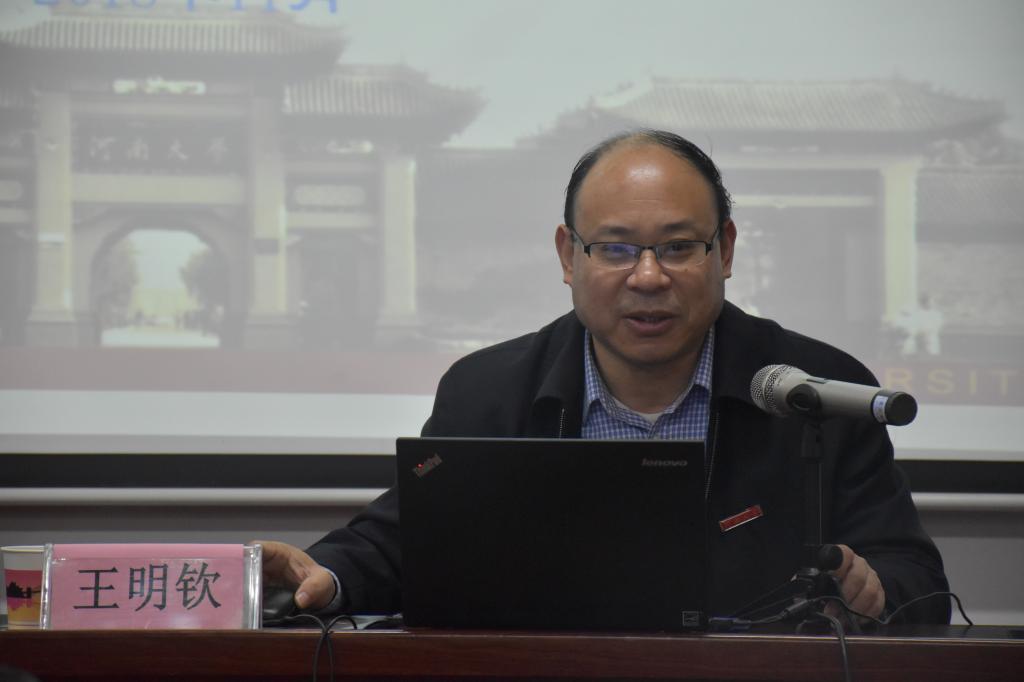 王明钦在课程伊始点明了此次课程的主题《“两个一百年”奋斗目标——河南大学与祖国发展同频共振》。他首先为学员们介绍了“两个一百年”奋斗目标的具体内涵,讲述了国家为全面建成小康社会所做出的实践努力,并结合河南大学艰辛坎坷的办学发展历程,通过多个生动的举例,让学员们全面地了解国家和学校的改革发展历史。他指出,河南大学在未来发展中要坚定理想信念,不忘初心,继续培养社会责任感与担当精神。