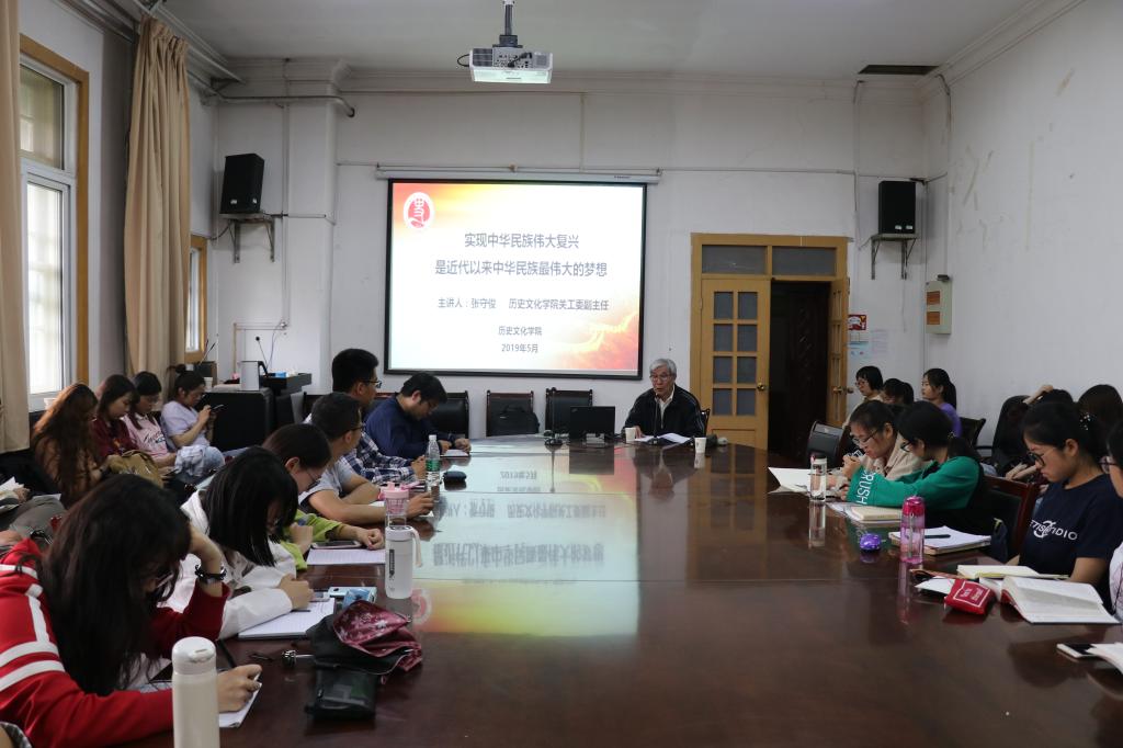 以学习领会习近平总书记在《纪念五四运动100周年大会》上的重要讲话为契机,5月9日下午,历史文化学院关工委在学院三楼会议室举行《实现中华民族的伟大复兴是近代以来中华民族最伟大的梦想》专题党课,学院关工委副主任张守俊老师担任主讲,党课由历史文化学院党委副书记姜捷主持。