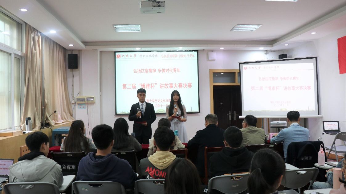 11月13日下午,河南大学历史文化学院第二届“博雅杯”讲故事大赛决赛在历史文化学院二楼会议室顺利举办。历史文化学院党委副书记姜捷,副院长李竞艳、魏继印,党办主任王文君,团委副书记郑振亚,2019级、2020级本科辅导员贾茜贝担任大赛评委。