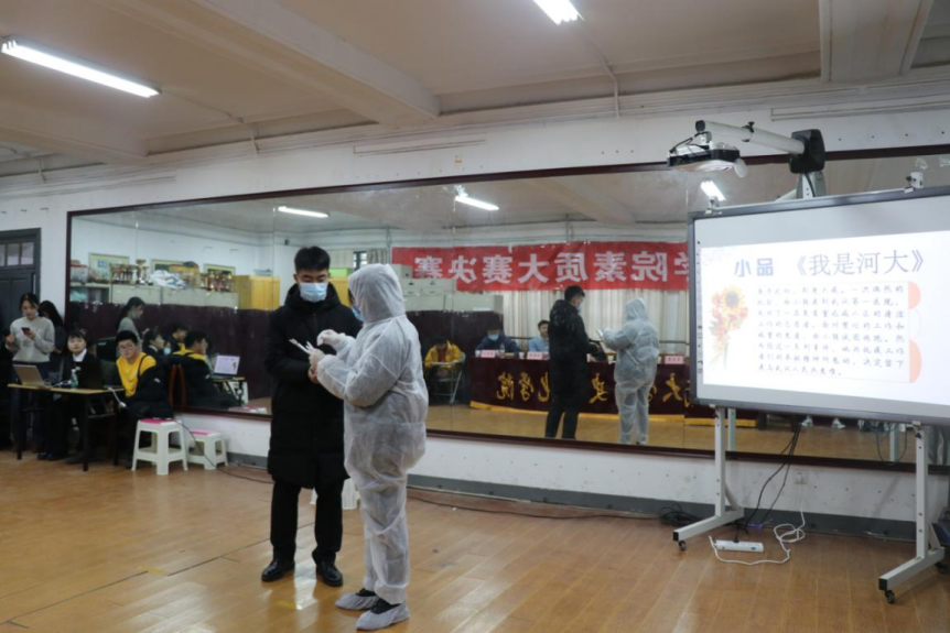 12月10日下午,历史文化学院第十三届素质大赛决赛于学院105活动室举行。历史文化学院党委副书记姜捷,河南大学MTA中心主任、文化产业与旅游管理学院酒店系党支部书记段冰,历史文化学院党委办公室主任王文君,历史文化学院团委副书记郑振亚,2019级、2020级本科生辅导员贾茜贝以及艺术指导崔高飞出席本次活动并担任决赛评委。