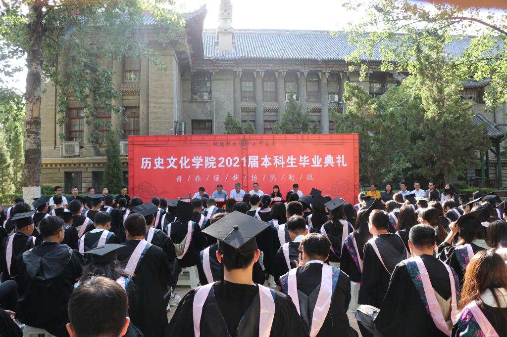 六月初夏,荷风送香。6月5日早上,历史文化学院2021届本科生学位授予仪式及毕业典礼分别在学院办公楼(7号楼)前及其西侧羽毛球场举行。学院领导班子成员、各系室负责人及部分教师出席典礼,2021届全体本科毕业生参加活动。学位授予仪式及毕业典礼由历史文化学院党委副书记姜捷主持。