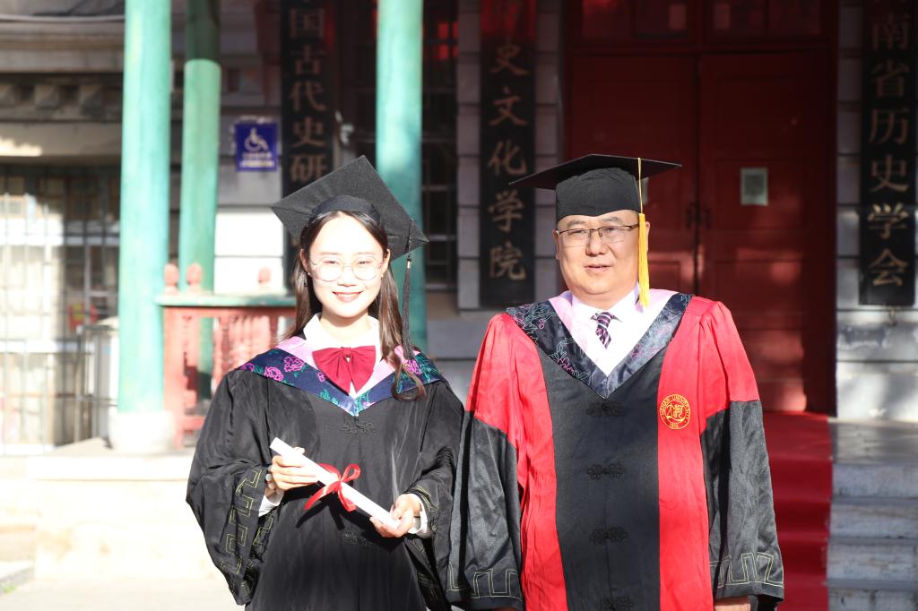 古朴典雅的学院办公楼前红毯映人,学位授予仪式在这里举行,历史文化学院副院长魏继印宣读《河南大学历史文化学院授予普通本科毕业生学士学位的决定》,历史文化学院院长张礼刚依次为本科毕业生援正流苏,颁发学士学位证书并合影留念。
