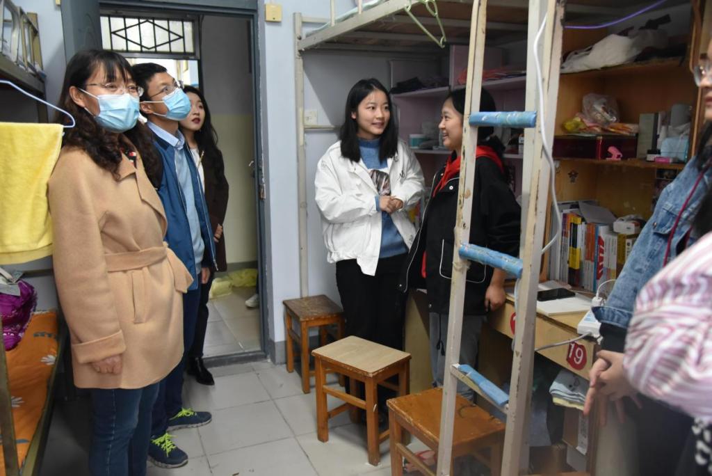 他们走进寝室,与同学们进行了亲切交谈,详细询问了同学们到校后的住宿、饮食等方面的适应情况,深入了解每个寝室成员家乡分布,细心的查看了同学们的被褥是否足够保暖,寝室用电是否安全,对部分不太适应新环境的同学进行了耐心的引导和暖心的安慰,并叮嘱同学们要养成良好的生活习惯,加强自我防护,在学习生活中要像家人一样相互帮助,遇到解决不了的困难时要向辅导员老师及时反馈,学院也将尽全力为同学们营造一个良好舒适的学习生活环境。同学们对学院领导的看望慰问非常开心,深深感受到了学院的关怀,表示一定会以积极向上的态度投入到未来的学习和生活中。