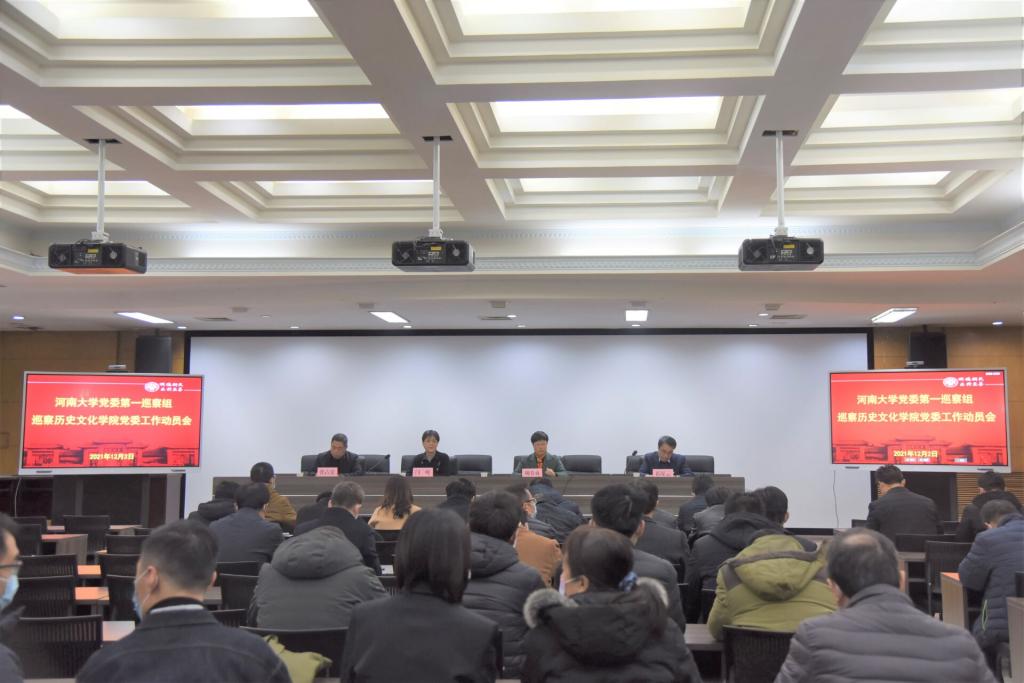 根据学校党委统一部署,12月2日下午,中共河南大学第十一届委员会第四轮巡察第一巡察组召开巡察历史文化学院党委工作动员会,校党委巡察工作领导小组成员、党委巡察工作办公室主任闫峻宣读了《关于中共河南大学第十一届委员会第四轮巡察组长、副组长授权任职及任务分工的通知》,并就巡察工作提出了指导意见和明确要求;第一巡察组组长胡春贞作巡察工作动员讲话、宣布了工作安排和具体要求;学院党委书记张占党作表态发言,院长祁琛云主持会议。第一巡察组全体成员、学院全体教职工、《史学月刊》编辑部党支部代表、离退休人员代表及学生代表参加了动员会。动员会召开前,巡察组和学院主要领导进行了见面沟通。