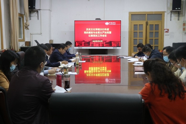 4月27日上午,历史文化学院在三楼会议室召开2022年度党的建设与全面从严治党暨以案促改工作会议,学院党委委员、班子成员、各党支部书记和全体辅导员与会。会议由学院党委书记张占党主持。