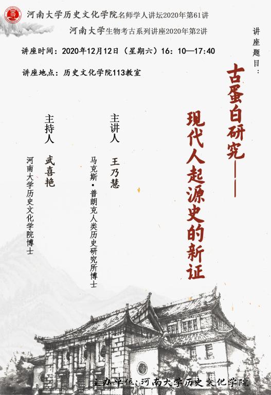 【讲座通知】王乃慧:古蛋白研究--现代人起源史的新证